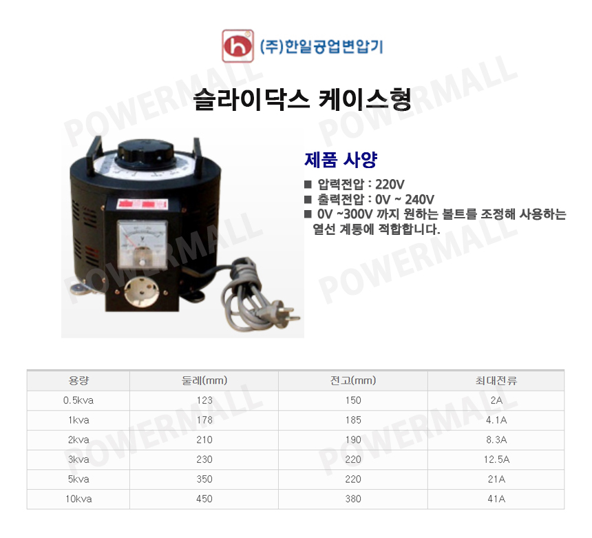 한일공업 슬라이닥스 케이스형 다운 트랜스 변압기 도란스