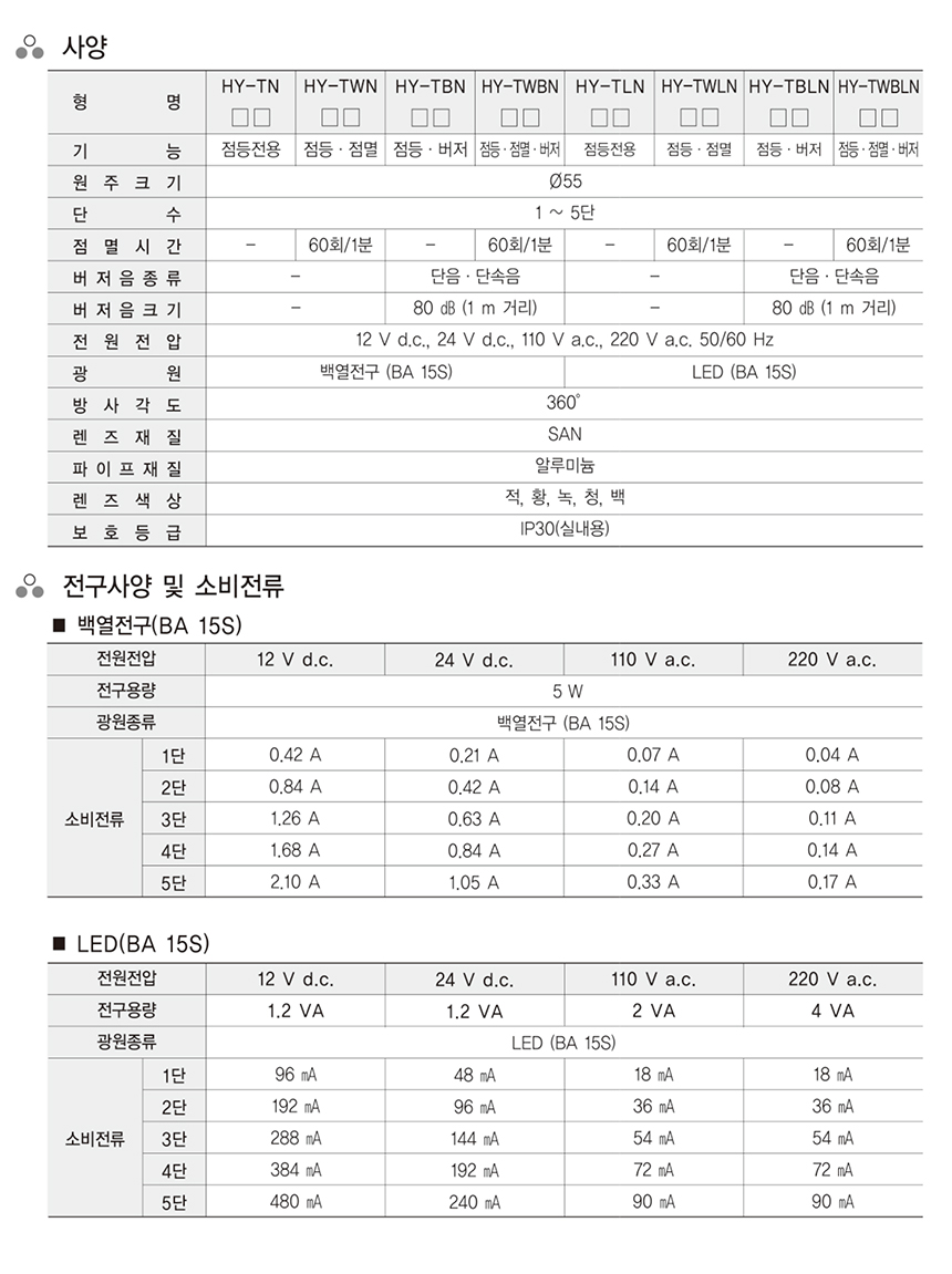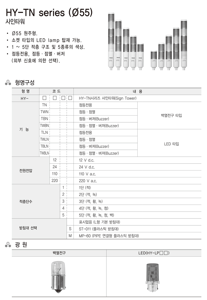 한영넉스 TWBN-24-3 점등 점멸 버저 DC24V 백열전구 타입 사인타워