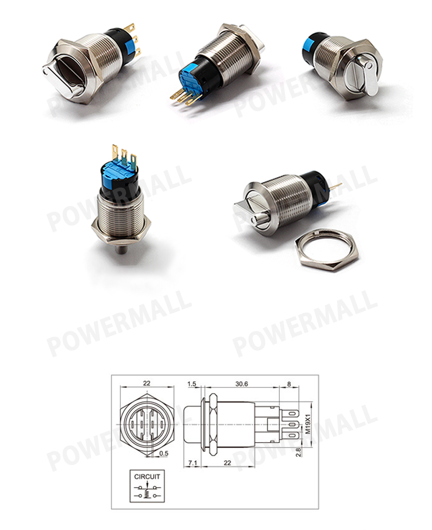 다전전기 DJ19-FJ 로터리 2포지션 보급형 푸쉬 메탈 스위치