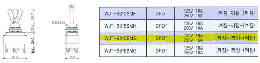 | WJT-4210SMC | 꺼짐<-(켜짐) 자동복귀 | 평시꺼짐 동작켜짐 | |