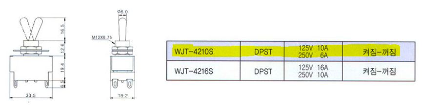 | WJT-4210SMC | 꺼짐<-(켜짐) 자동복귀 | 평시꺼짐 동작켜짐 | |