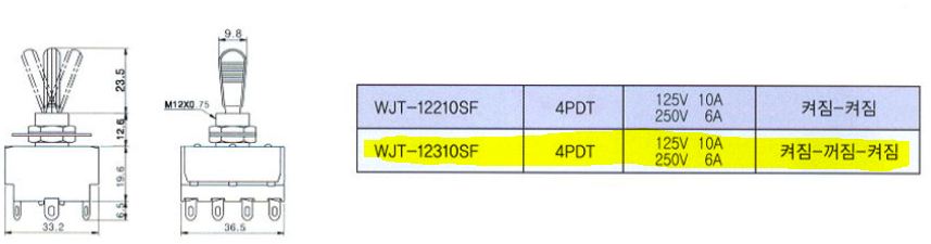 WJT-2210SF-MC | 꺼짐<--(켜짐) | 평시꺼짐 동작켜짐 | |