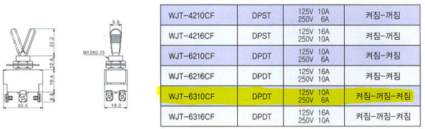 WJT-2210SF-MC | 꺼짐<--(켜짐) | 평시꺼짐 동작켜짐 | |
