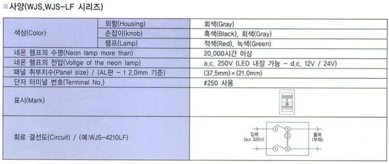 우진전기 시소스위치 2단6핀 WJS-6210MF(켜짐