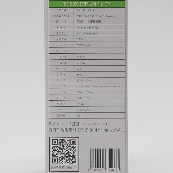 비츠온 EL 램프 30W E26 주광 KC T4 4U PAI 30W E26 I39819