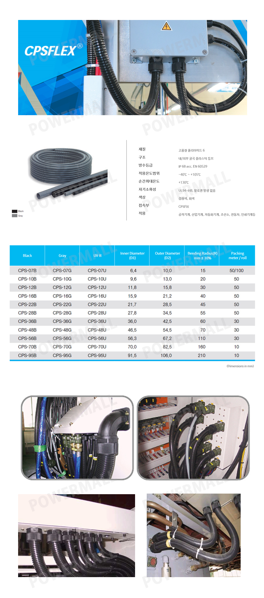 CPS 후렉시블 튜브 CPS-12B 1롤 50M 자동차 전선관 배선호스