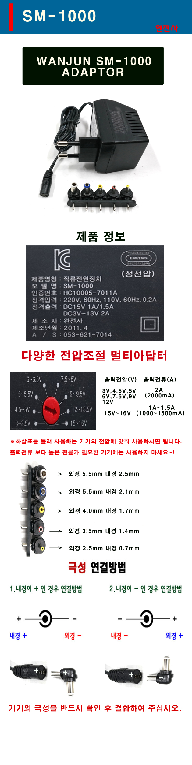 완전사 SM-1000 SMPS 정전압 직류전원장치 멀티 만능 아답터 3V~16V 1A~2A